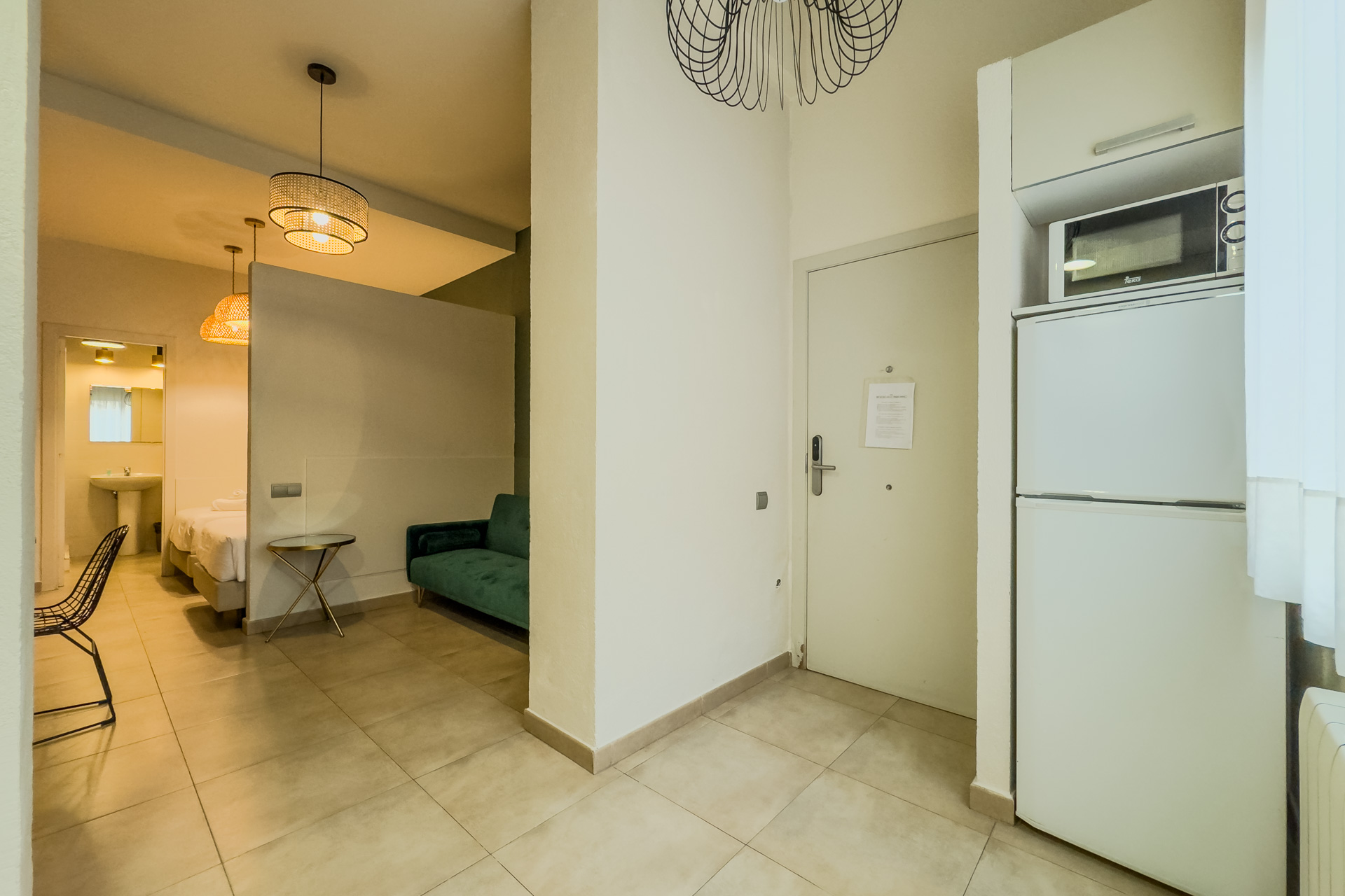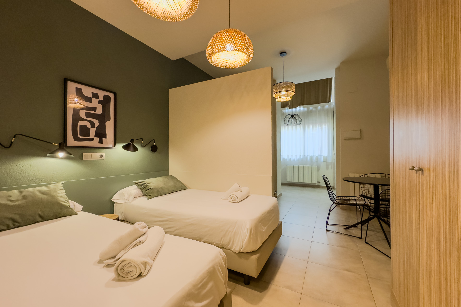 Bonito estudio situado en la zona de Sants-Montujic, pleno centro de la ciudad. A 5 minutos andando a la estación de tren de Sants y minutos al Camp Nou. A poca distancia de Plaza España y Fira de Barcelona, ​​Castillo de Montjuic. Puede ser cama de matrimonio o dos camas individuales. Baño y cocina. Súper bien comunicado con todas las zonas de la ciudad. Ideal para viajes de ocio y negocios. Toallas y sábanas incluidas.