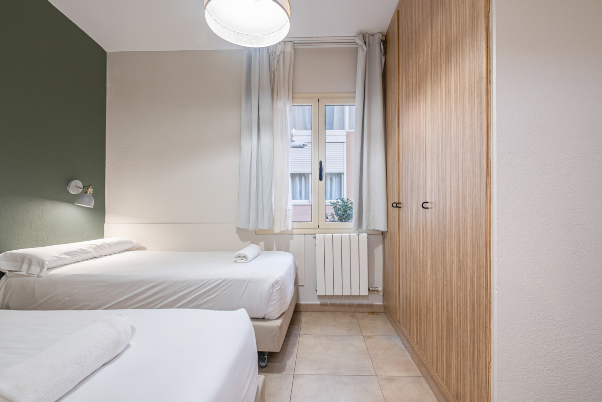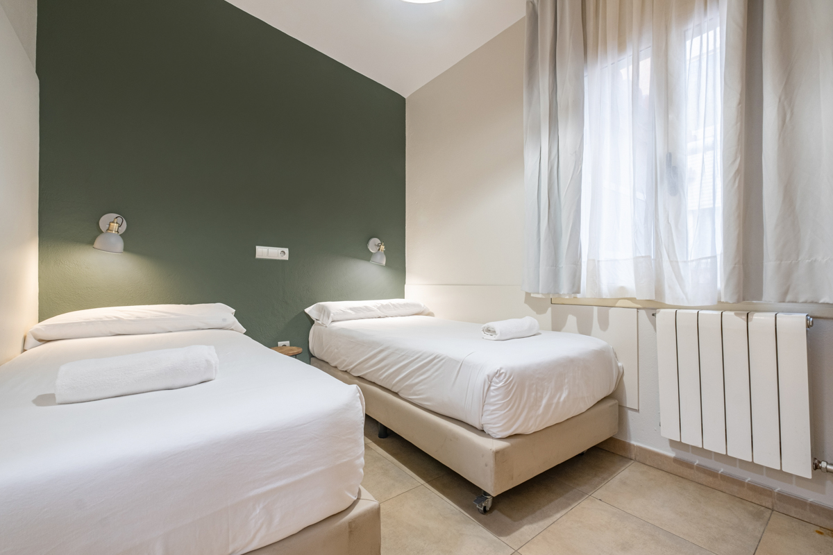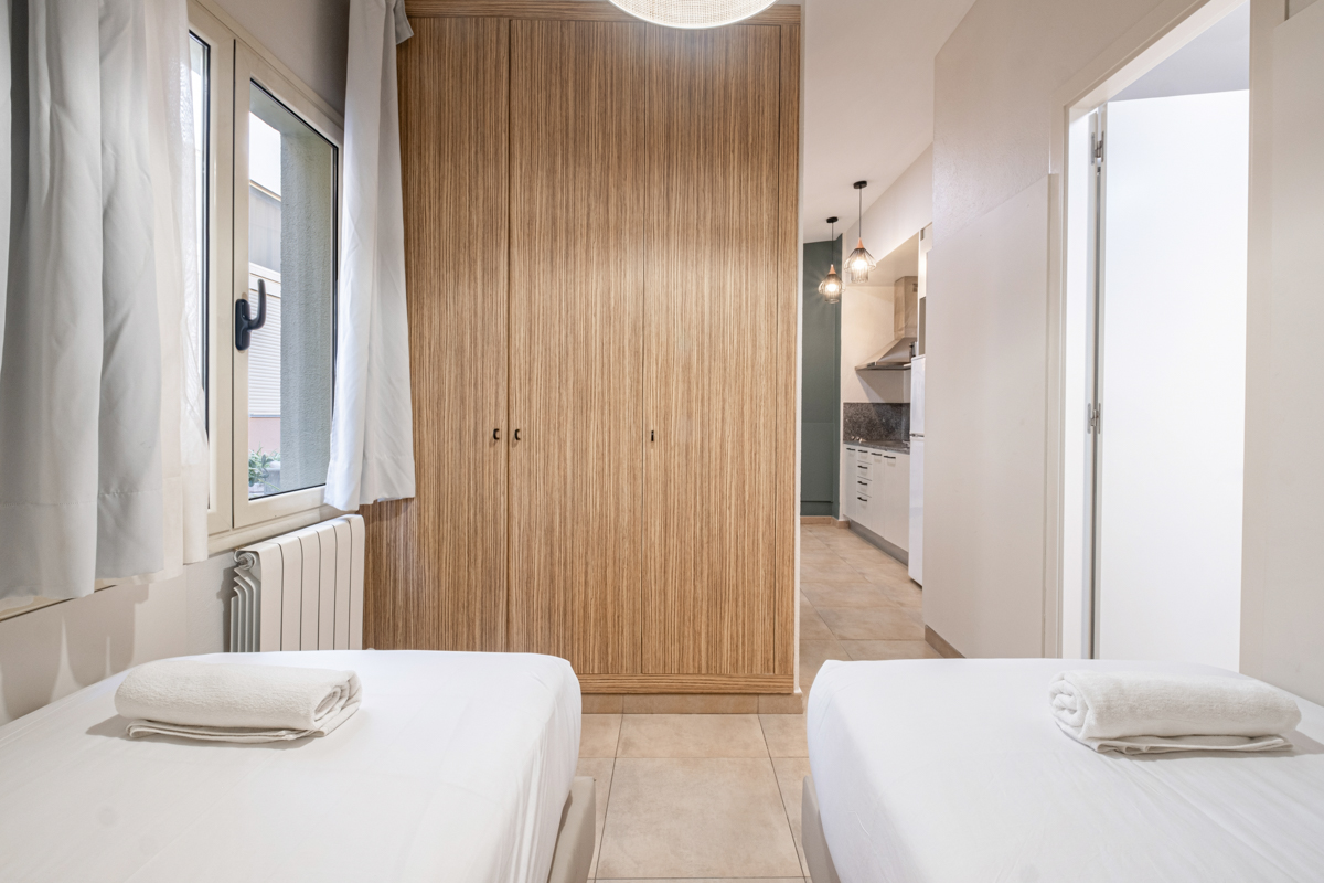 Bonito estudio situado en la zona de Sants-Montujic, pleno centro de la ciudad. A 5 minutos andando a la estación de tren de Sants y minutos al Camp Nou. A poca distancia de Plaza España y Fira de Barcelona, ​​Castillo de Montjuic. Puede ser cama de matrimonio o dos camas individuales. Baño y cocina. Súper bien comunicado con todas las zonas de la ciudad. Ideal para viajes de ocio y negocios. Toallas y sábanas incluidas.