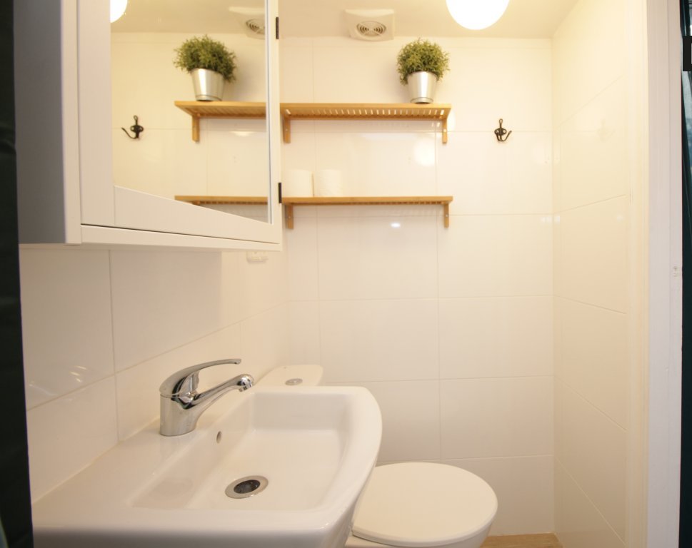 El estudio cuenta con una cocina y baño bien equipados, un comedor con un sofá cama y una mesa para disfrutar tus comidas con vistas al ventanal que da a la calle, gracias al cual disfrutarás de una luz radiante y una atmósfera soleada.