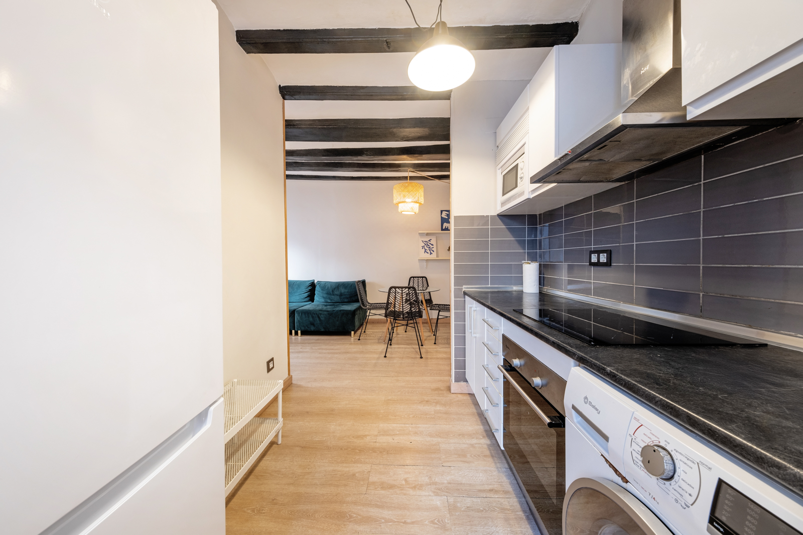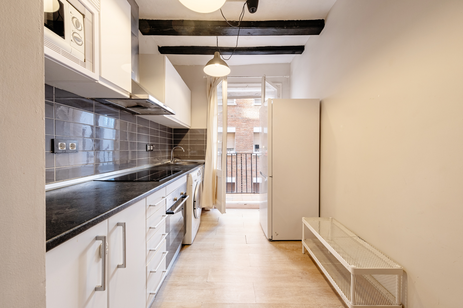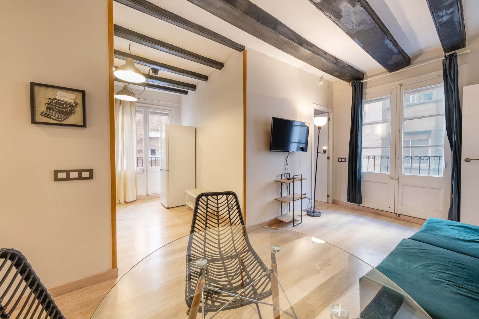 This charming 2-bedroom apartment covers an area of 45 m² and is located right in La Barceloneta, steps from the beach. Super well located, very local plenty of local supermarkets around. Beach is just 1 min away. The nicely renovated property is exterior and has a modern kitchen, cozy living area with a TV, and 1 bathroom. Second bedroom is not visible in the picture but exist, with one individual bed. This area is also well-connected by public transport to the rest of the city, and has good options for shopping and dining. Having the experience of living like a local in front of the sea. Wifi access is included, and other bills max 50 eur/month.