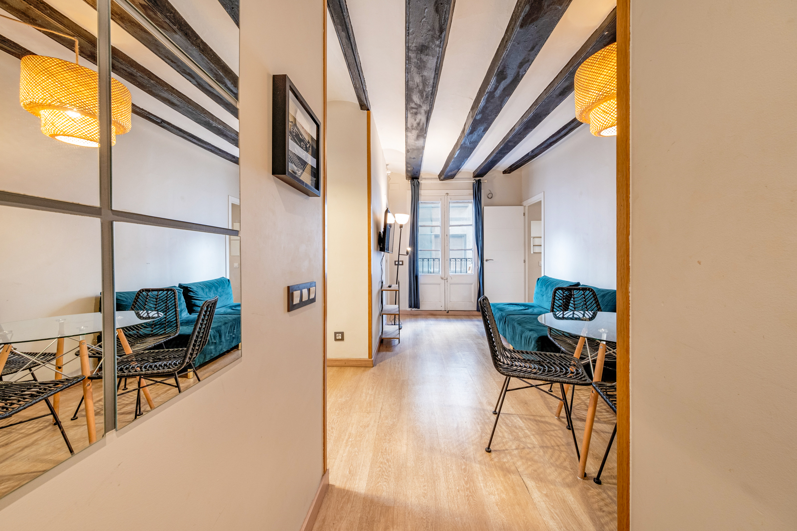 Our apartments with Mediterranean flavour are next to historic Port Vell and its exciting commercial area. Just a 5-minute walk away, you’ll have more than a kilometre of cosmopolitan beach within reach while the Barceloneta underground stop is just 2 minutes away, so you can be quickly connected to any hotspot in the city.