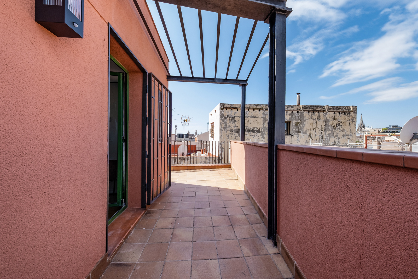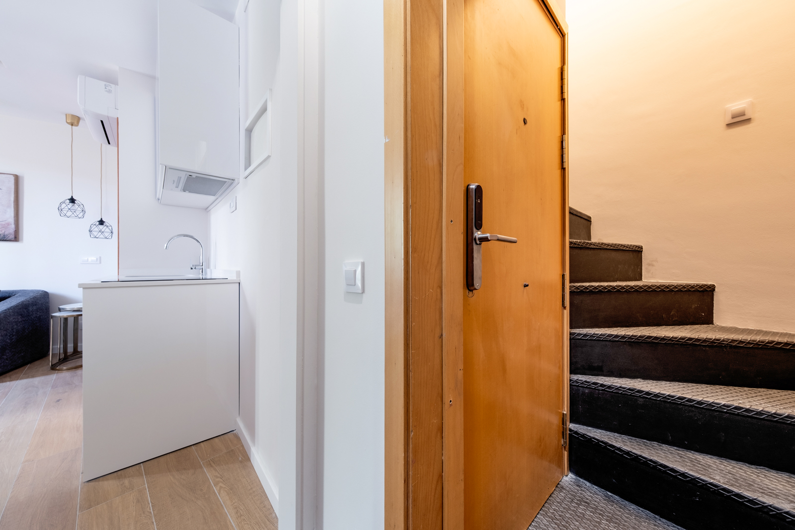 Newly renovated duplex with a kitchen, 1 bathroom, 1 small bedroom upstairs and a small terrace.