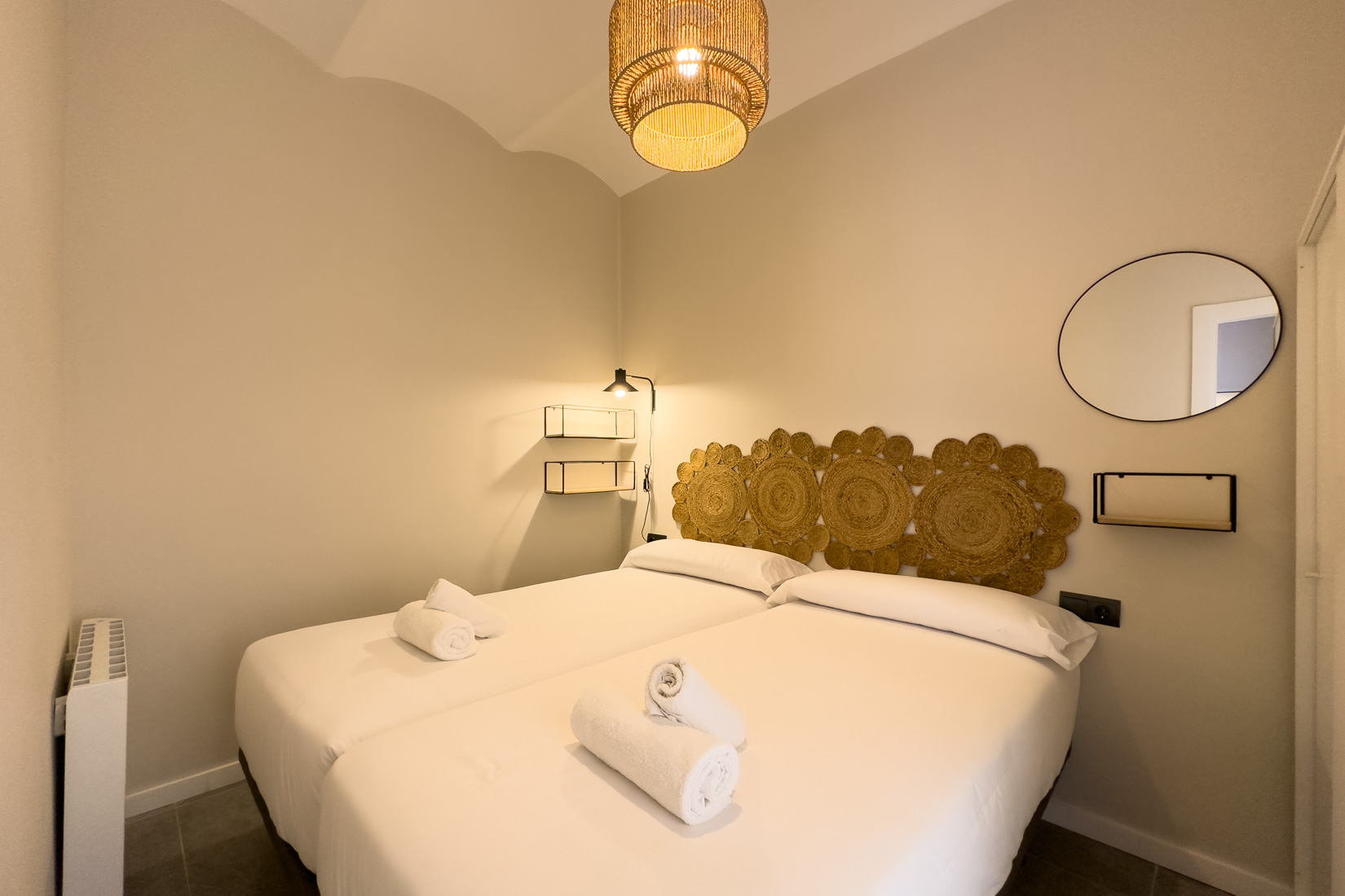 Refurbished 2 bedroom apartment with balcony 5 minutes walking from Plaza España, super central , lots of PUblic transport. 1 double bedroom and one single. Fully furnished, AC/heating, Kitchen, Wi-Fi, Washing machine , wooden ceilings and lift in the building. The kitchen is open and the living room facing the balcony very calm orientation and bright. Location is ideal with plenty of options of supermarkets, restaurants.