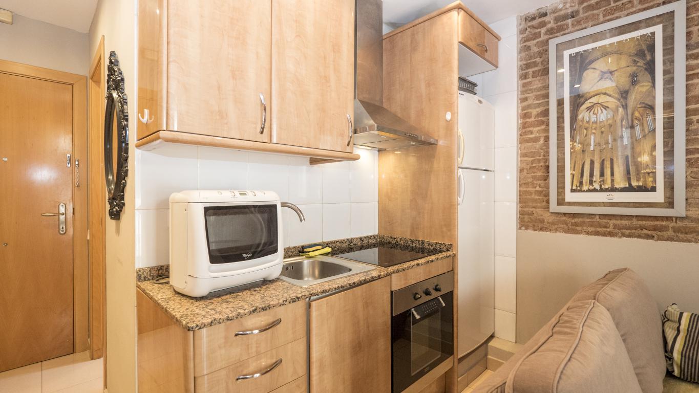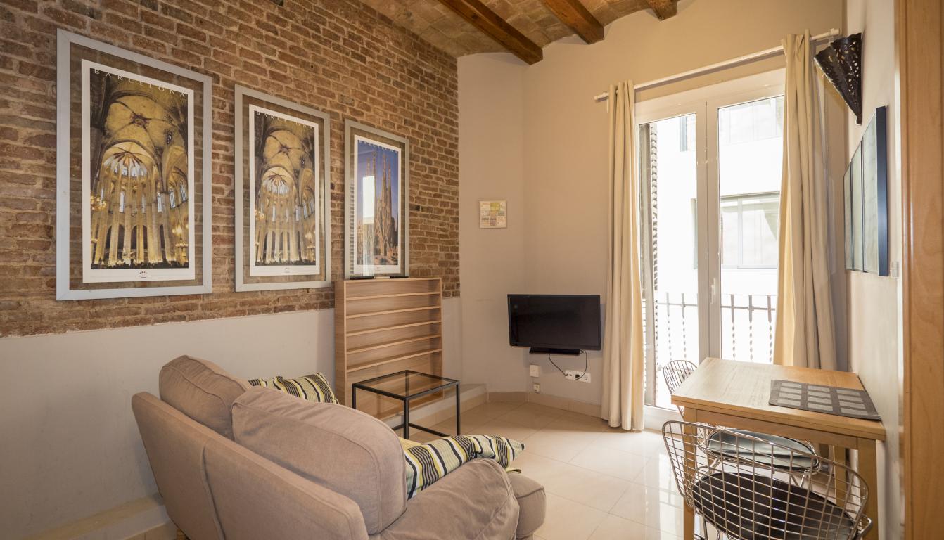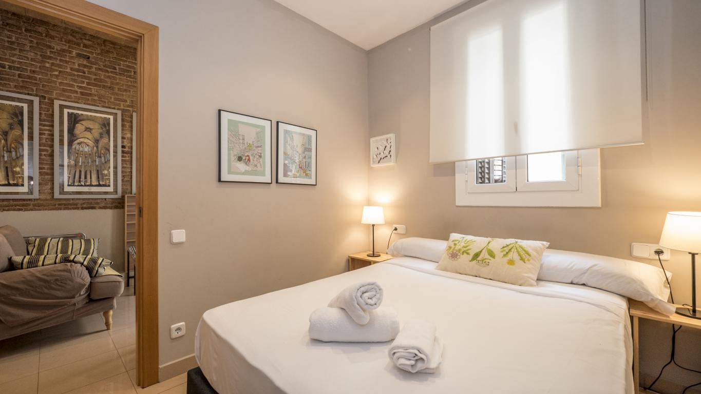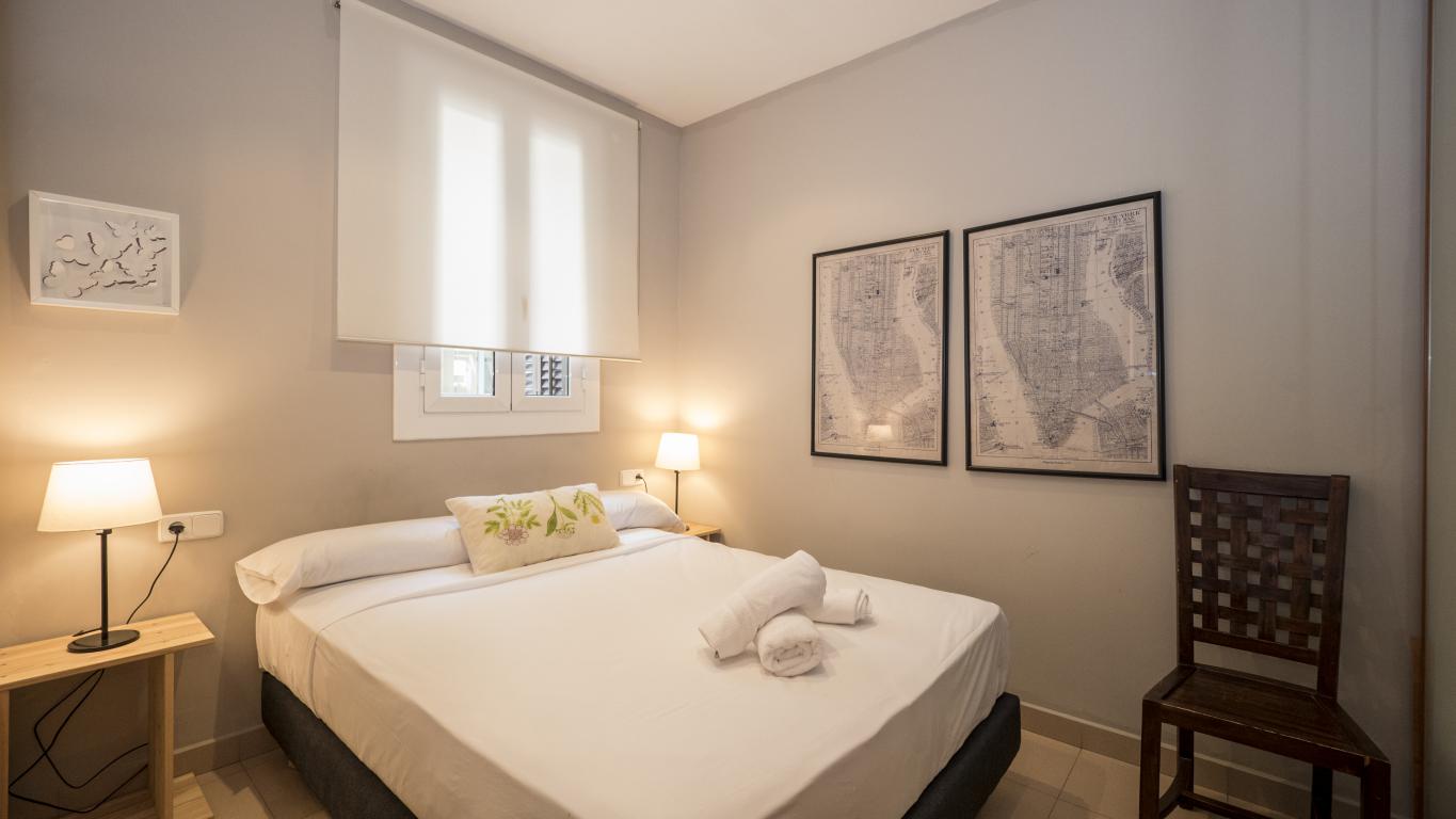 These cozy and spacious apartments, located in the heart of the Barrio de Gracia, are fully equipped and ready to move into. The apartments have a living room covered by a rustic brick wall, which gives character and warmth to the apartment. Also, it communicates with the dining room, creating a spacious and pleasant environment to share with friends and family.