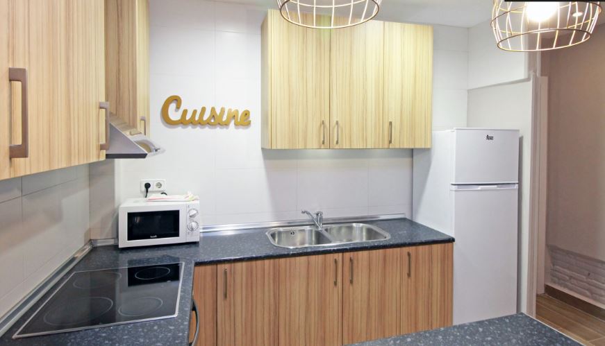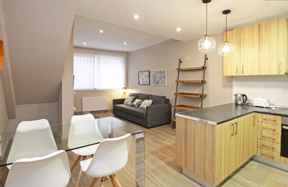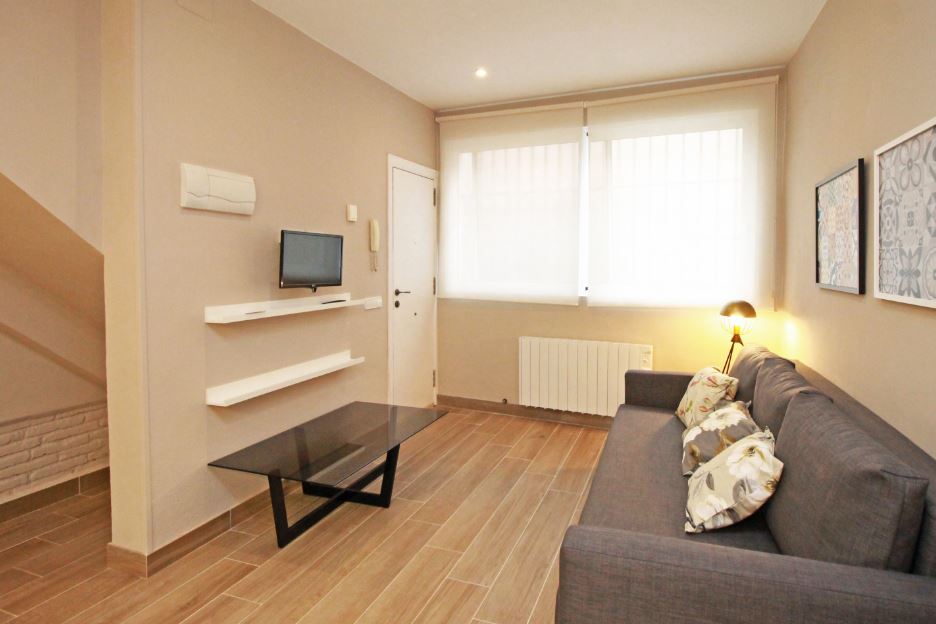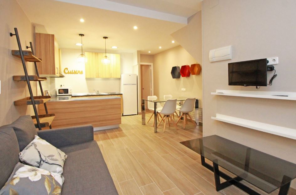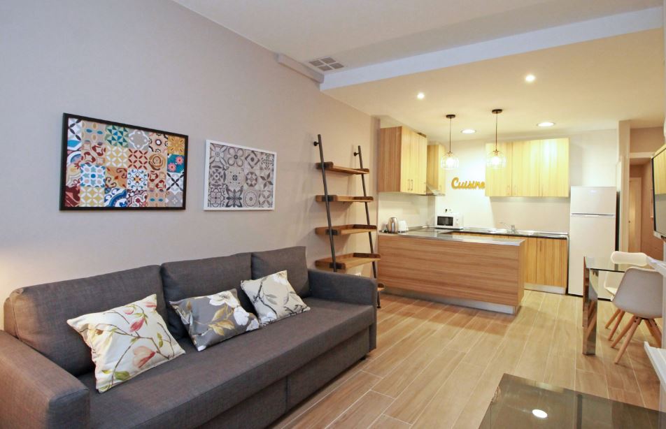 This contemporary style flat has a single room and a double room as well as a spacious and bright open living room and kitchen in addition to a bathroom equipped with everything you may need. If you need anything more, we’re all ears!